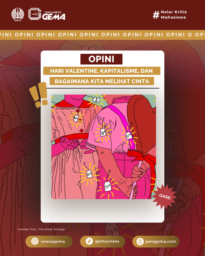 Hari Valentine memang tak akan pernah bisa lepas dari pengaruh kapitalisme yang cerdik dalam mengemas cinta menjadi komoditas. Namun, pada akhirnya, cinta bukan soal hadiah atau momen mewah di satu hari tertentu. Cinta adalah perhatian, pengertian, dan kebersamaan yang dirawat setiap hari, tanpa harus selalu diukur dalam bentuk materi. Karena sejatinya, cinta yang paling tulus justru terletak pada hal-hal sederhana yang datang dari hati, bukan dari dompet.
