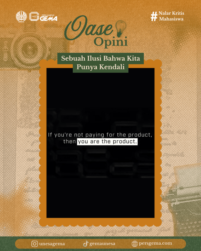 Kita selalu berpikir bahwa kita memiliki kendali penuh atas informasi yang kita terima di media sosial. Sampai akhirnya kita menggunakan media sosial dengan sesuka hati hingga menyelam dalam arus informasi. Tanpa disadari, setiap ‘klik’ yang kita lakukan dapat menghasilkan sistem yang bekerja secara kompleks dalam menyaring, mengarahkan, dan membentuk bagaimana cara kita berpikir.